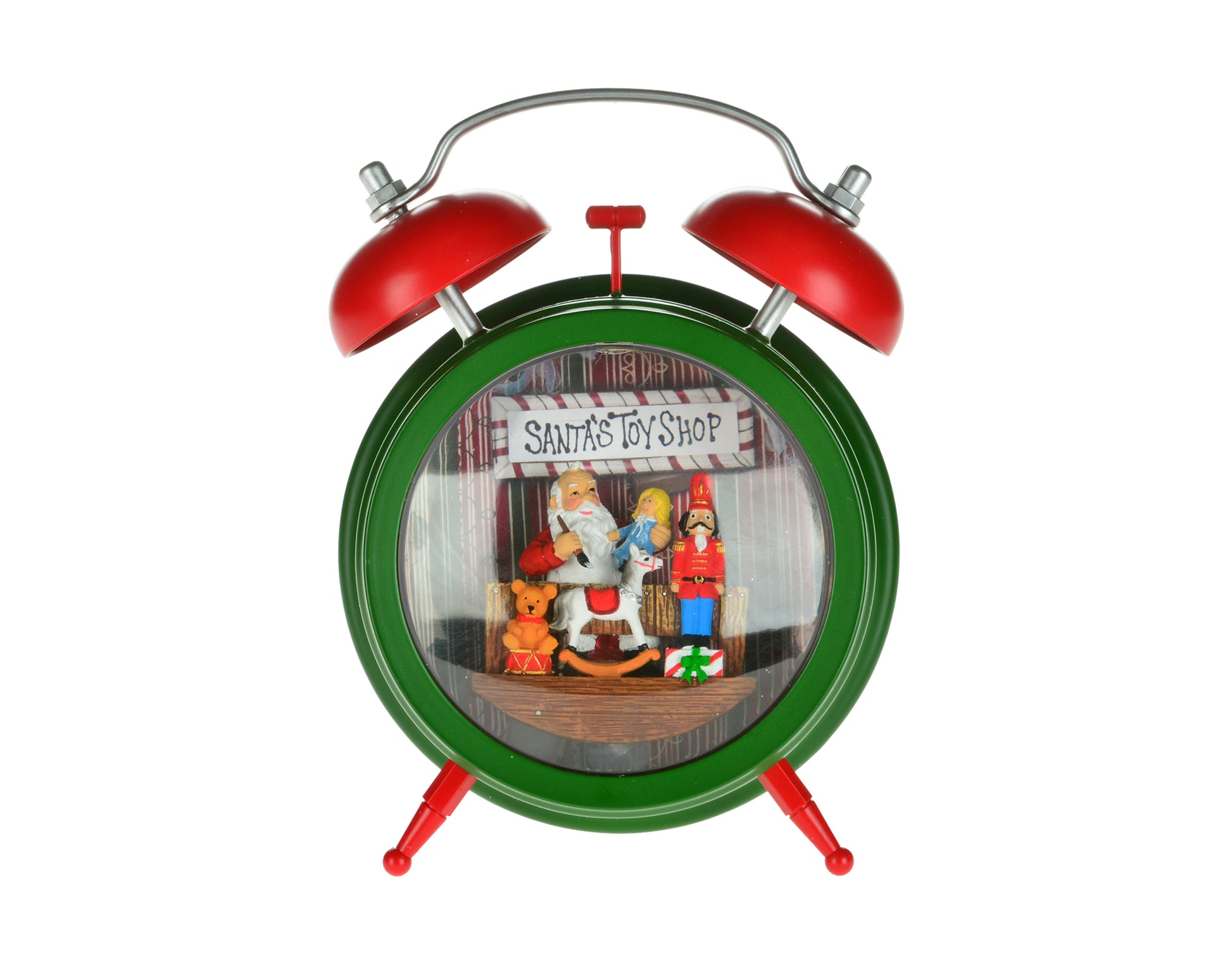 Cute Alarm clock with Santa hard at work in his toy shop!